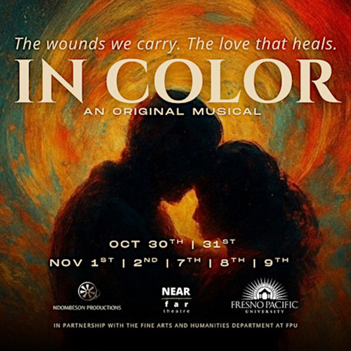 Ndombeson Productions and Near Far Theater are partnering with the Fine Arts and Humanities Department at Fresno Pacific University to bring this production to the stage. In Color is described as “a story about the wounds we carry—and the love that heals them.” The production features original music and a story set in the city of Fresno.