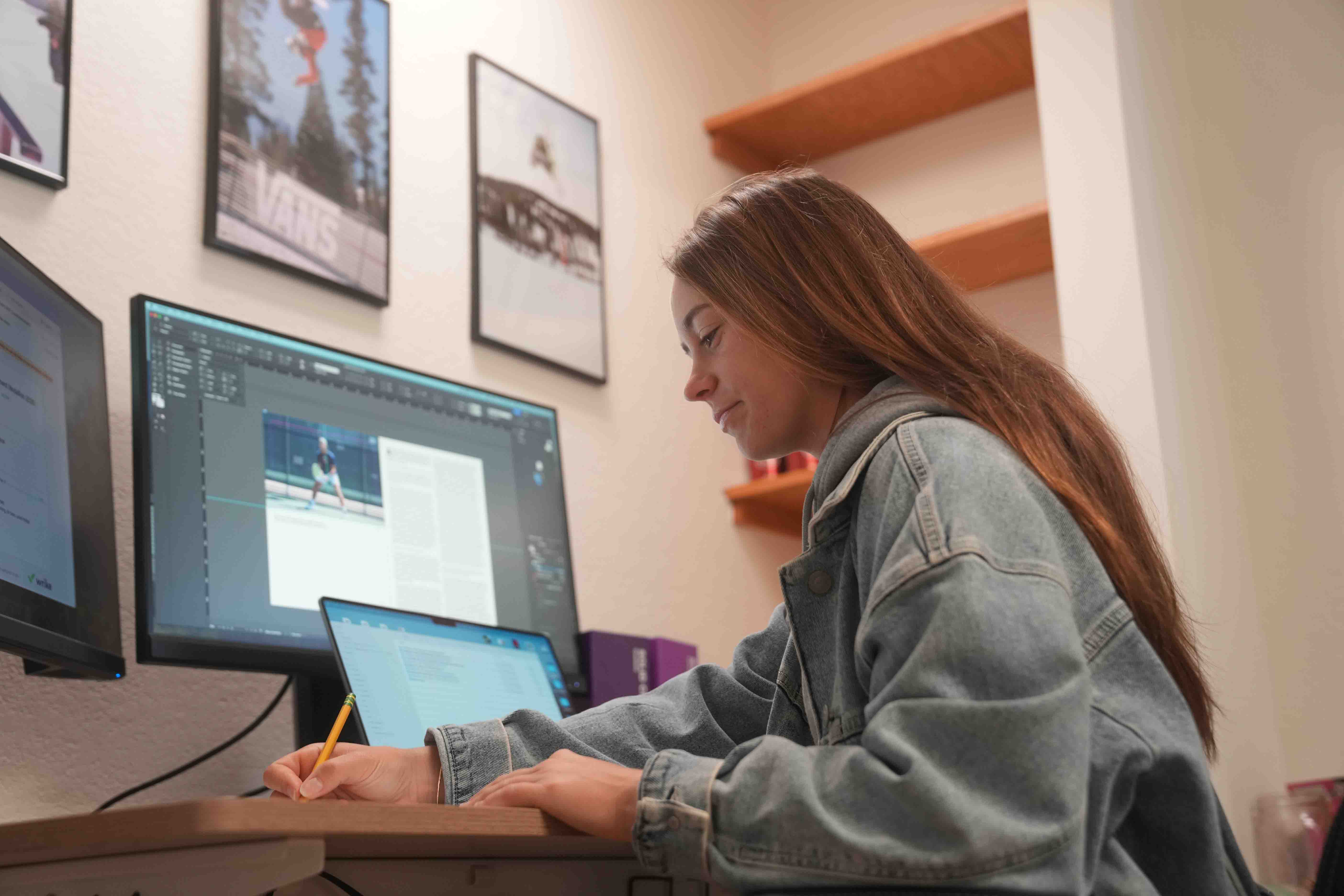 Whether you dream of designing brands, building engaging digital experiences or creating visuals that connect people, our B.A. in Graphic Design prepares you to succeed in a world shaped by visual communication.